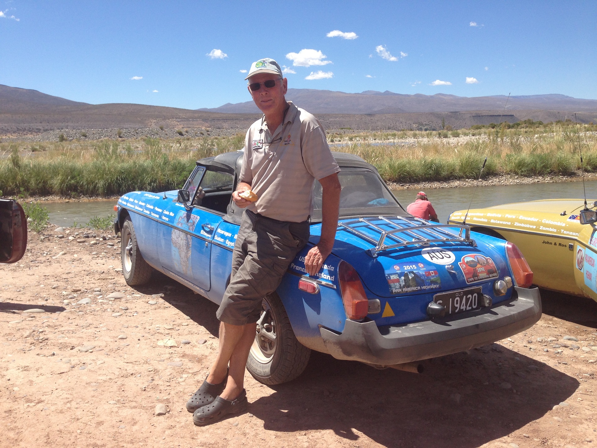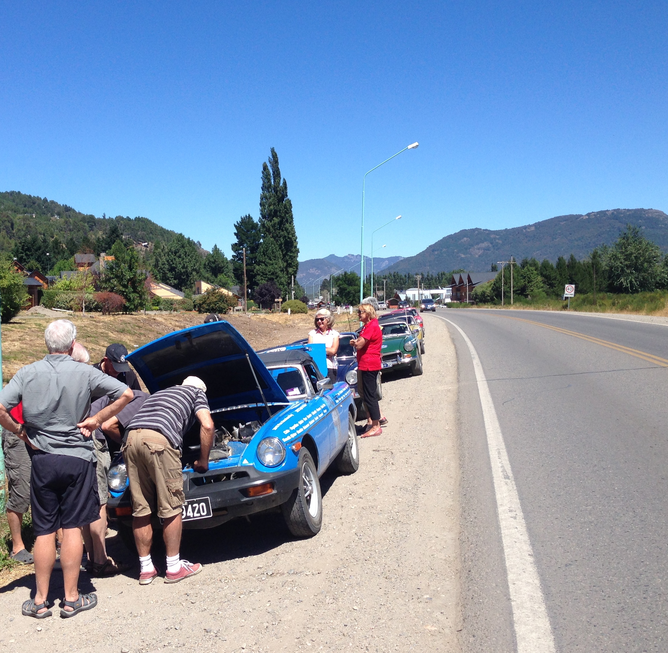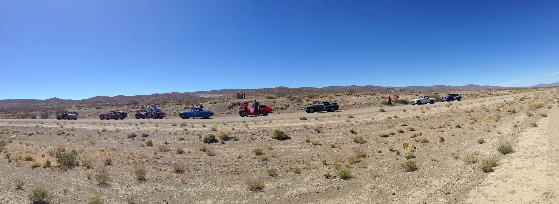 Our tea/pit stop was in the middle of nowhere with a 360 degree vista. A commen scenario in central north Argentina. The 8 MGs in the middle of an expansive brown patagonia landscape must make quite a picture of colouyr by the occasional traffic passing by. I call us ‘The Little Rainbow Train”