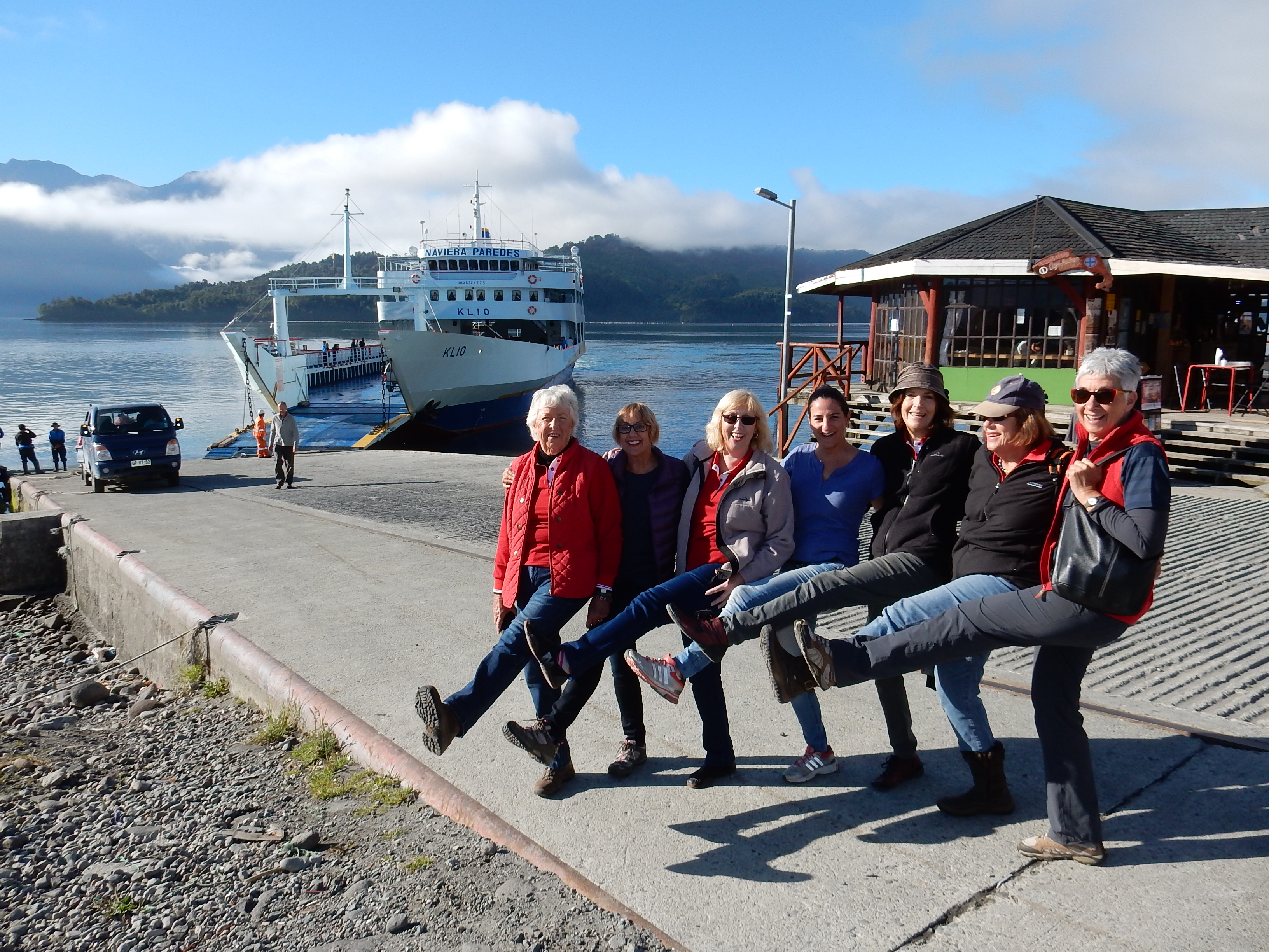The ferry trip is short and sweet through the picturesque Fjord Largo and our destination , Cabanas Caleta Gonzalos,in Parque Pumalin is right at the ferry disembarkation point. The grey shingled Cabanas are delightful wooden structures in a natural forest setting against the backddrop of the misty mountains. We shared a cabin with Dave and Laurel..lots of frivolity!