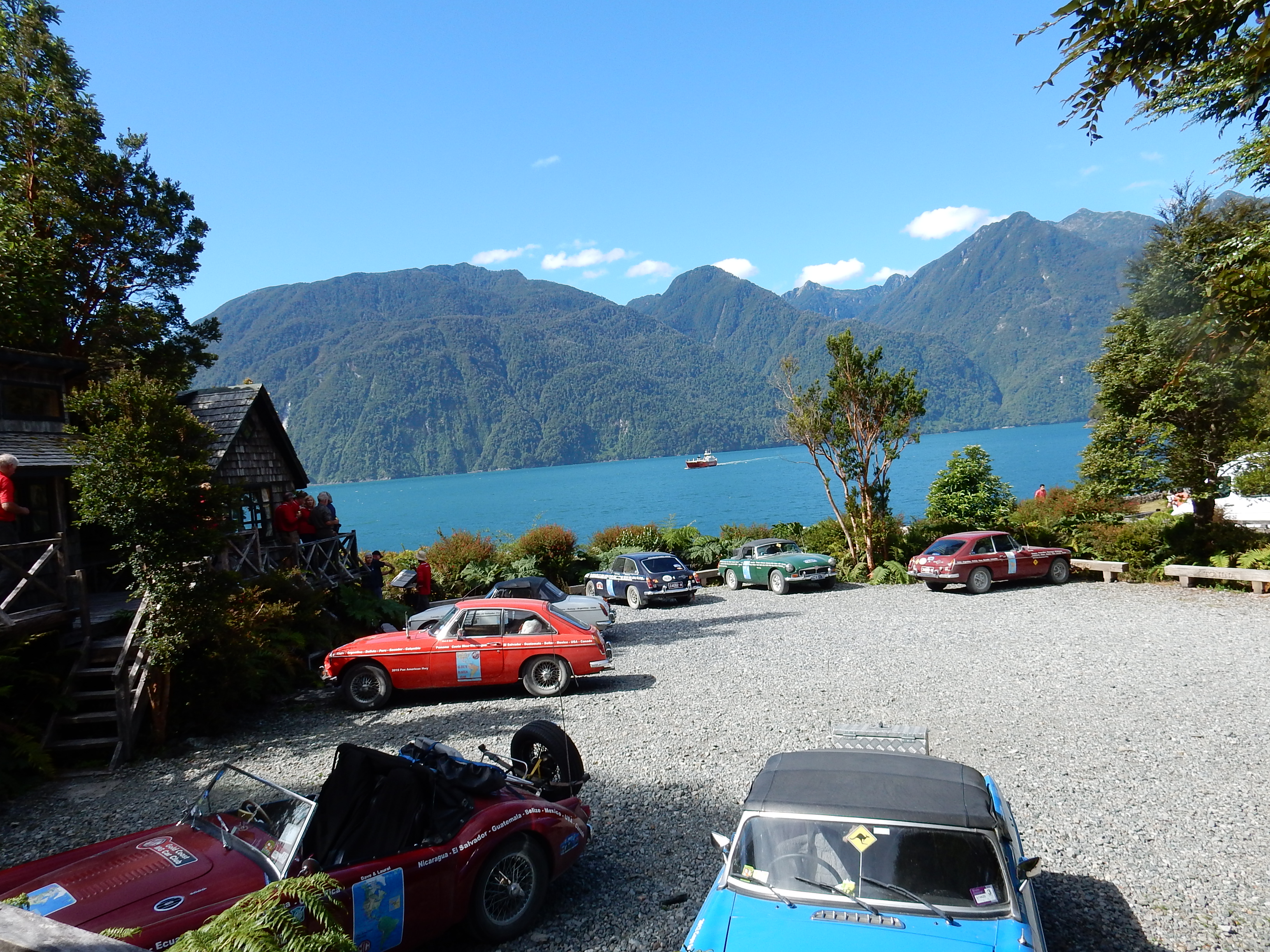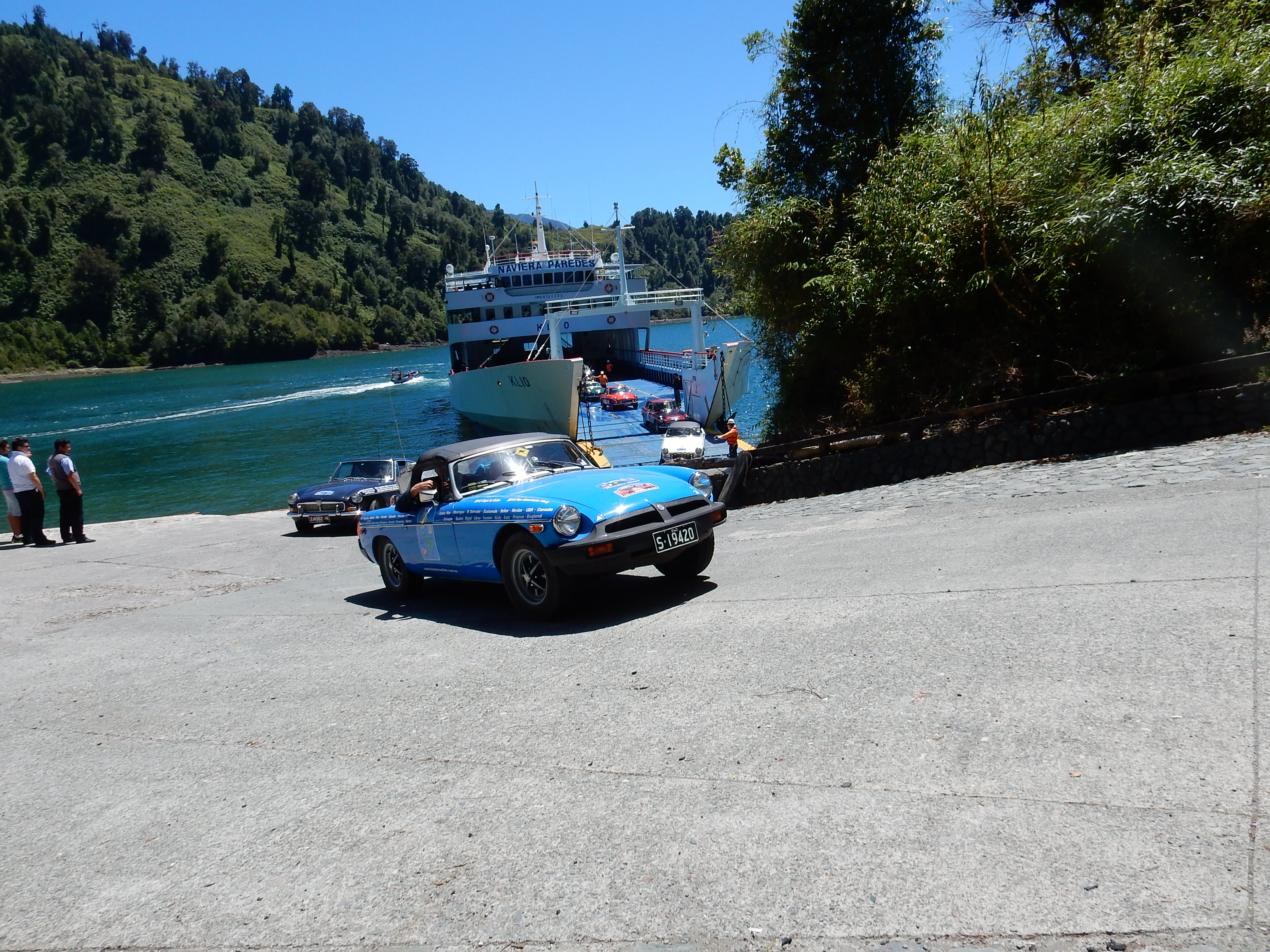9,00 am embarked on a large ferry ‘Kilo’ haveing said fond farewell to Guy and Andrea and crazily waved as the ferry left the slipway at Hornepirenat 10.00 am for the approx 3 hour journey through Chile fjords to Leptepu.There must be 40 vehichles on board plus a huge tourist bus, various trucks and our eight MGs! . Pretty ferry trip and time went surprisingly quickly. Maybe a good time to relax!
