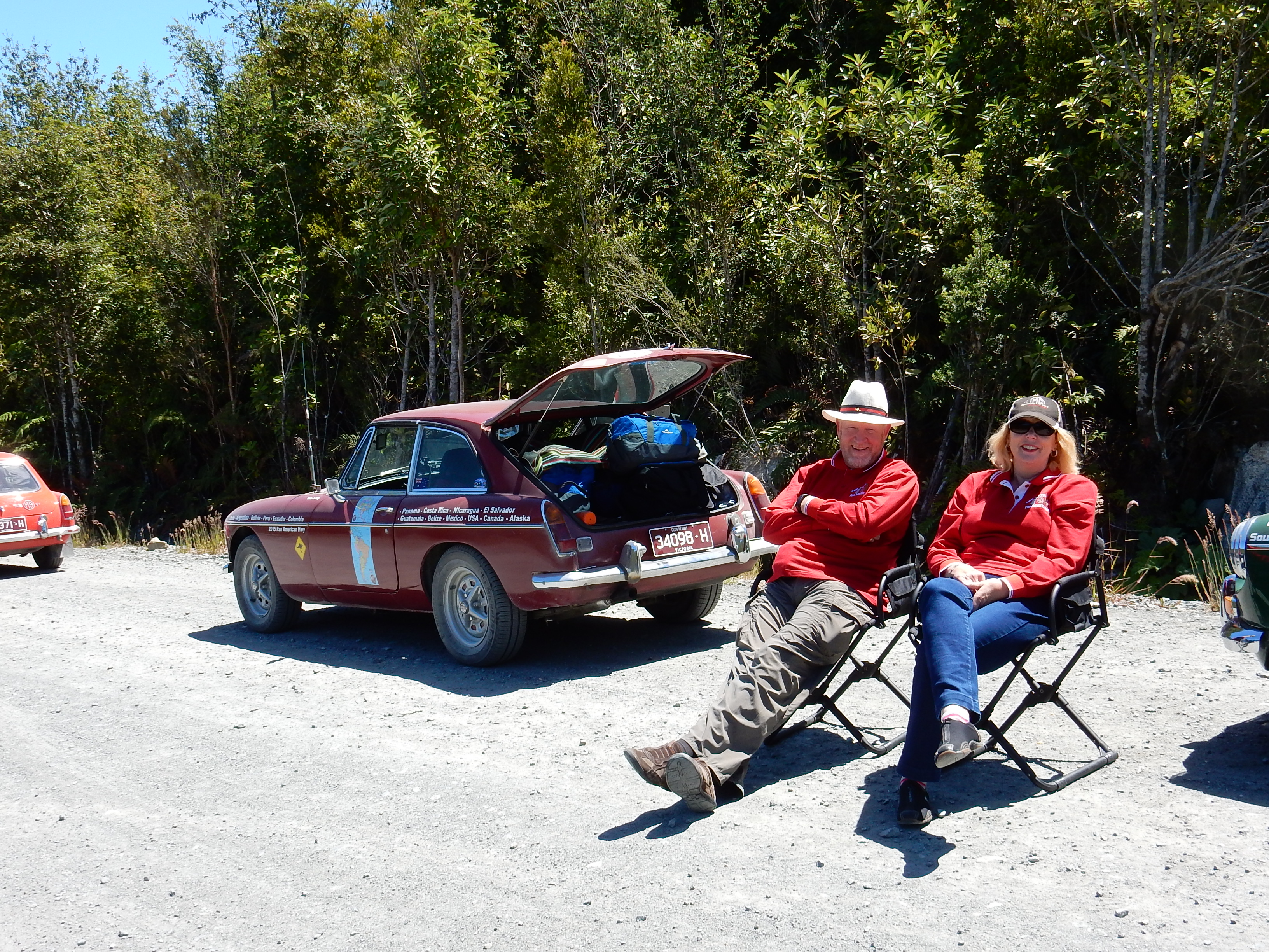 While some drive to see if they can visit the Hornepiren National Park, Ross and Mike work on thier MGs , Dave Laurel with Guy Andrea and myself went to check out the next ferry departure point for the following day and discovered a ferry side coffee and cake cafe. Again interest in our silly little MGs!