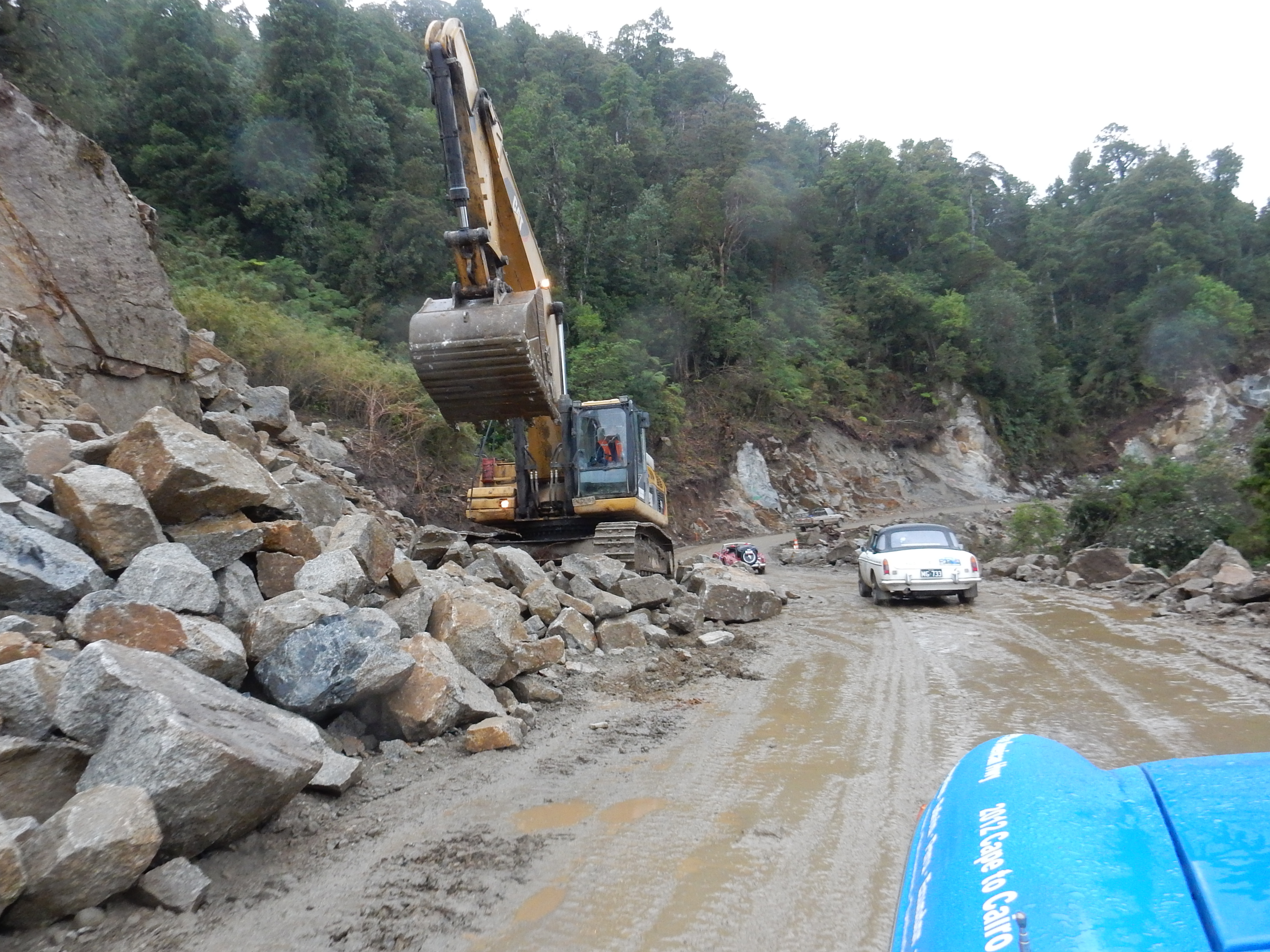 At 17.00 we are given the go ahead and it was a slow drive through the constructions area…mud ,rocks ,traffic and huge construction equipment. At the sight of the ‘Eight MG Rainbow Train’ winding their way through all of this , the construction workers all shouted,smiles, waved and took photos with their smart phones!!! I question what was written in the log book for the days work as we certainly slowed the progress as we drove through !